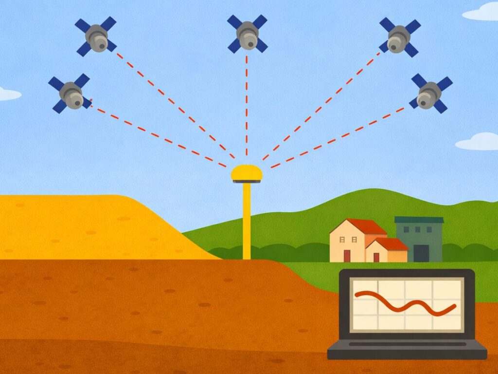 GNSSとはGlobal Navigation Satellite Systemの略称で、日本語では全球測位衛星システムと呼ばれており、測位衛星を介して位置情報を取得する技術です。
